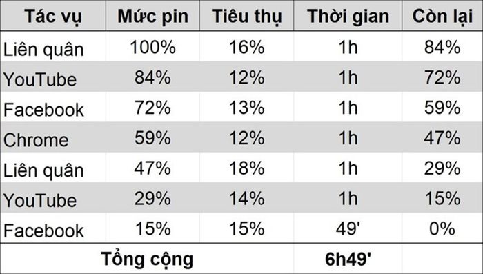 Battery usage time tested by The World of Mobile reviewerDue to the upgrade to Full HD+ screen resolution, the device will have some trade-offs in usage time. With a 5,000 mAh battery, Lenovo Tab M10 FHD+ will provide about 4-5 hours of usage time, allowing you to work or entertain yourself without worrying about running out of battery disrupting your experience.