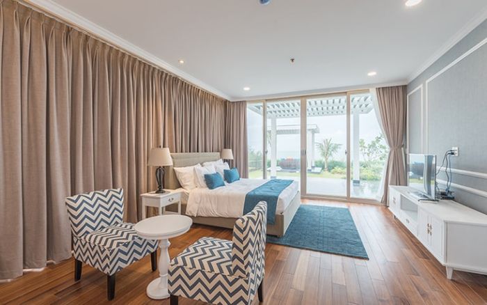 Moreover, the location of this resort is also stunning. From the high hill, looking far ahead, guests can grasp the beauty of the sea. Combined with the vast sky, you suddenly feel your heart become peaceful. It's very convenient to reach the beach from here, so you can take a stroll along the coast to admire the sunrise every day.