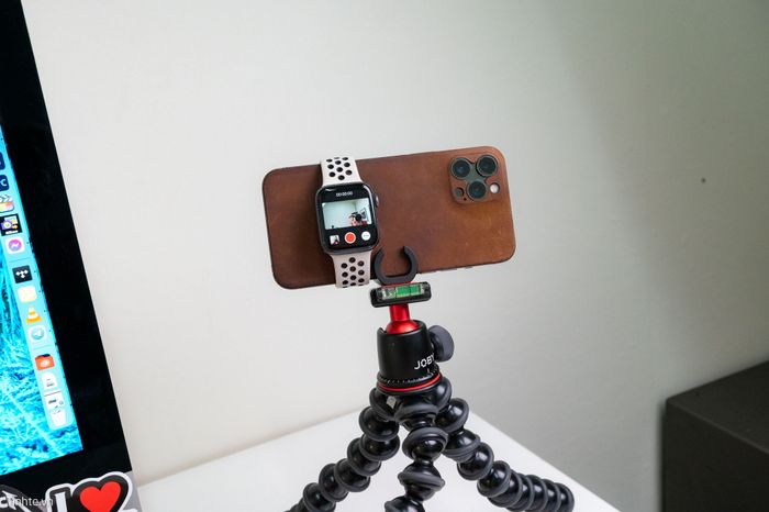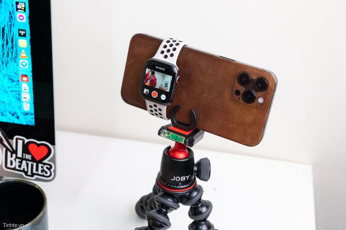 During recording, the Watch screen will turn off after a few minutes to save battery even though the video recording is still ongoing, you simply need to press a button to reactivate this screen. I find it very useful for those who often self-record or vlog at home, while traveling... Using the front camera, you have the iPhone screen to observe, but with lower quality, so this is a solution to increase video quality with the rear camera and monitor what's happening: the scene, composition, your position in the frame...Attaching the Watch to the iPhone is as easy as wearing it on your wrist, if you're out and about or filming while on the move, remember to secure it tightly, firmly attaching it to the iPhone to avoid it falling off.