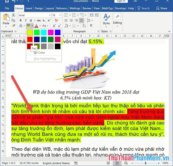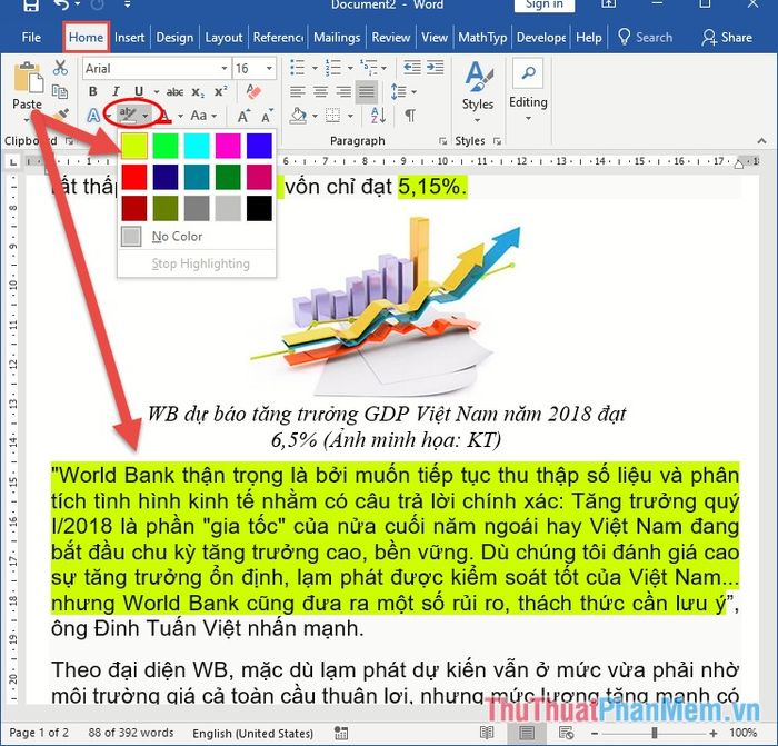 To create a highlight, simply select the content you want to emphasize to your audience -> go to the Home tab -> choose the Text Highlight Color icon -> select the color you want to highlight the content -> the highlighted value will stand out in your report text.