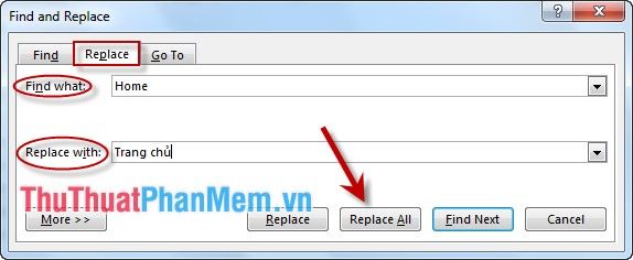 Click on replace All to replace all occurrences of the search phrase with the replacement phrase, or select Replace to replace each instance individually. For example, here replace all -> click on Replace All: