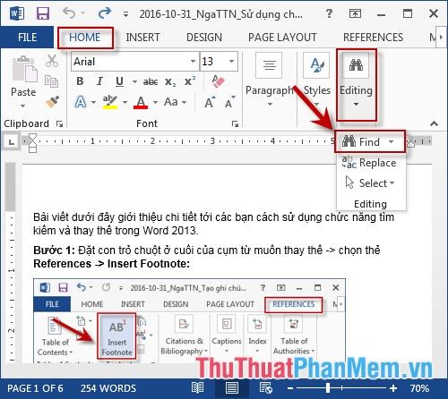 Step 1: Go to the Home -> Editing -> Find tab (or press the Ctrl + F key combination):