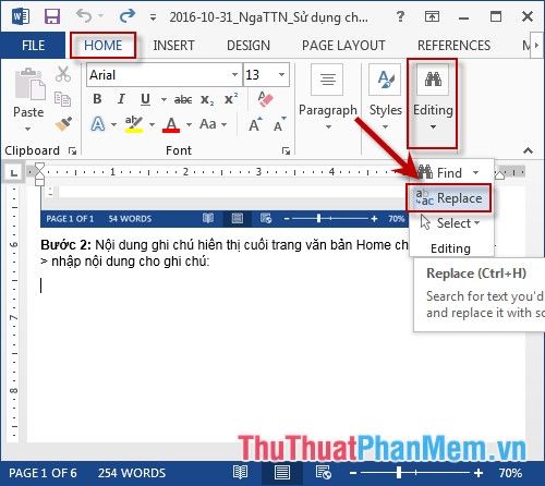 Step 3: After searching for the data you want to replace, go to Home -> Editing -> Replace (or press Ctrl + H).