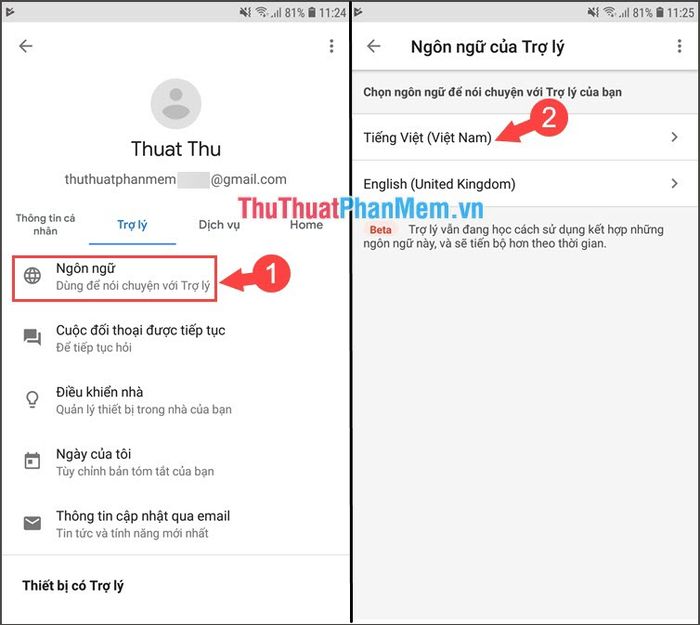 Step 5: Choose Language => Vietnamese to utilize Google Assistant in Vietnamese.