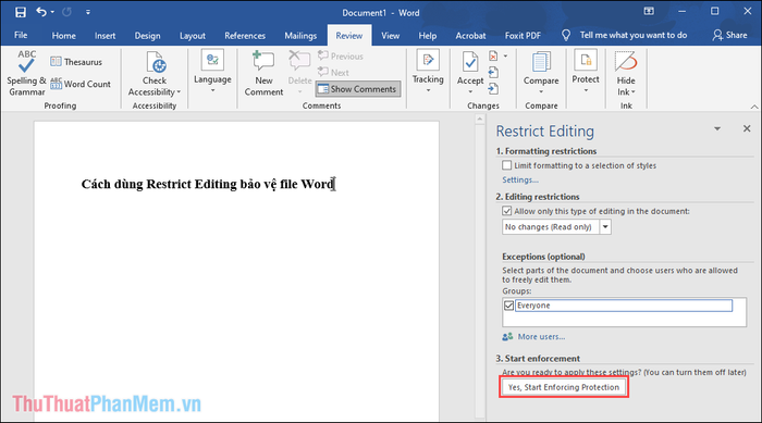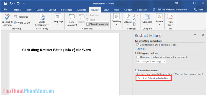 Step 3: Finally, simply select Yes, Start Enforcing Protection to proceed with locking the Word file.