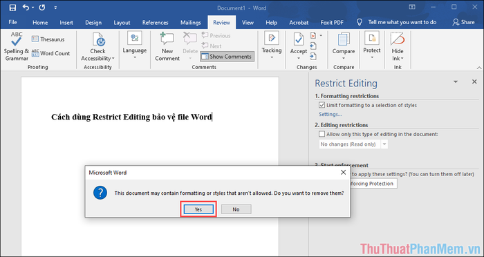 Step 7: To proceed with protecting the Word file, hit Yes, Start Enforcing Protection to initiate the protection process.