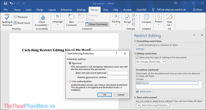 Locking data in Word can be done through various methods, and in this article, Mytour will guide you on using Restrict Editing.