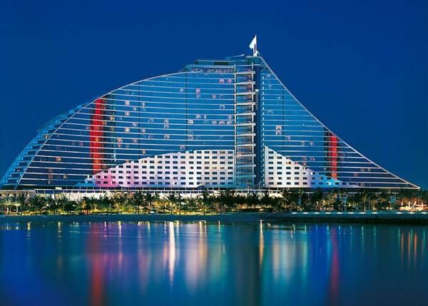 Dubai offers a variety of hotel designs, ranging from traditional Arabic architecture to modern structures with unique features such as wind towers, lakes, and even waterways.