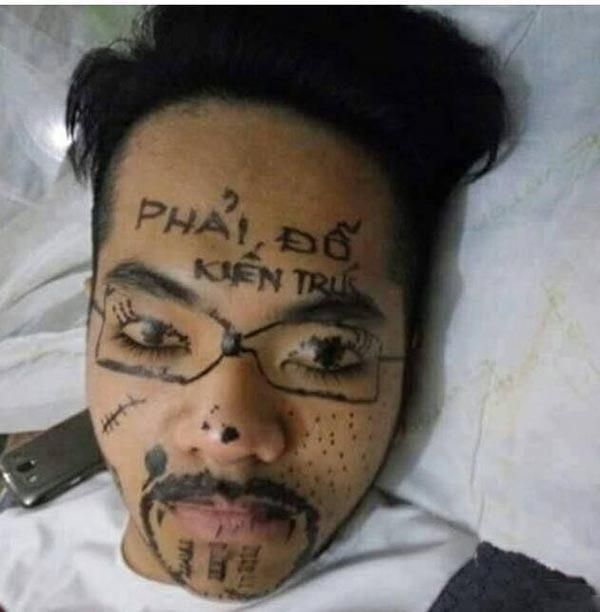 The following image serves as a perfect illustration of the saying, 'Don't sleep while your friends are awake,' unless you want to become inadvertently famous. To avoid such a 'bitter' outcome, never doze off while your mischievous friends are still up.