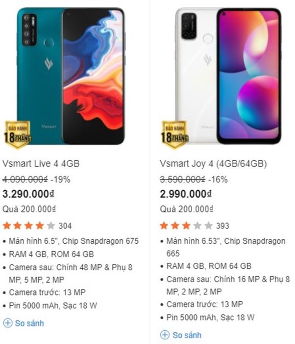 As we can see, Vsmart Joy 4 and Vsmart Live 4 are two 'bang for your buck' smartphones at the moment. With good camera systems, powerful configurations, long-lasting batteries, and outstanding advantages compared to other competitors in the 3 million price range.