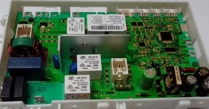 The main circuit board controls and manages the operation of the washing machine. If the circuit board encounters a malfunction or is damaged, signaling to the operating parts of the machine will be affected, leading to improper functioning of the washing machine.