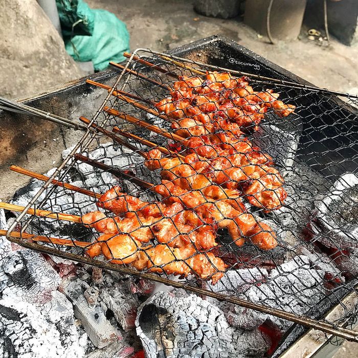 The grilled pork neck skewers, once completed, will boast an appealing golden-brown color and an enticing aroma. This dish is perfectly sweet and fragrant, with hints of garlic and lemongrass. Grilled pork neck skewers served with fresh vegetables or bread are simply unmatched. During the cold season, there's nothing better than sitting around a hot charcoal grill, enjoying the aroma of freshly grilled skewers!