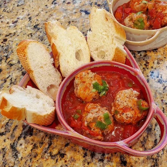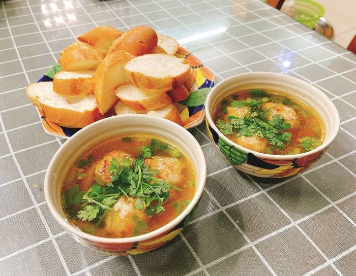 The meatballs are perfectly round, visually appealing, blending harmoniously with the fragrant and rich tomato sauce. Meatballs served with bread are the perfect combination. Add a little pickled vegetables and chili sauce to make the dish even more complete. If you're a fan of sandwiches, don't forget to try your hand at this char siu sandwich!