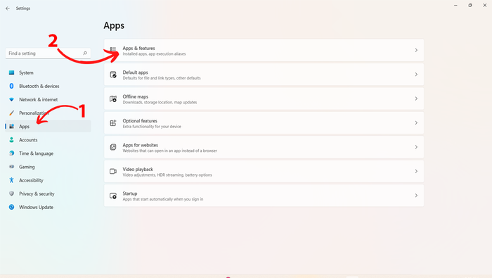 Step 2: Select Apps > Apps & features.