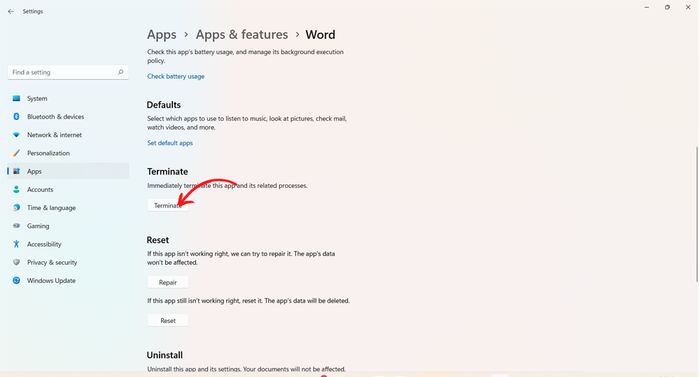 Step 4: Finally, locate the Terminate option to proceed with closing the application.