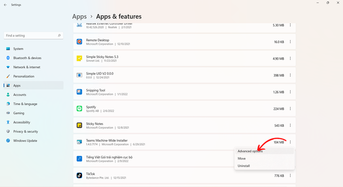 Step 3: Choose the app you want to close. Then, click Advanced options.