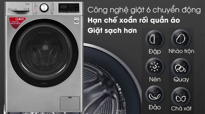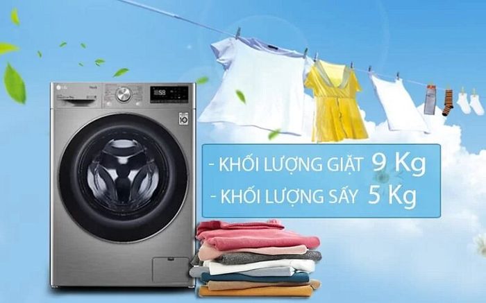 The LG 9kg Front Load Washing Machine FV1409G4V integrates two functions in one product with a washing capacity of 9kg and a drying capacity of up to 5kg, suitable for families of 3 to 5 people. The drying function is extremely convenient, saving a lot of time for drying clothes, especially in rainy seasons or high humidity conditions.