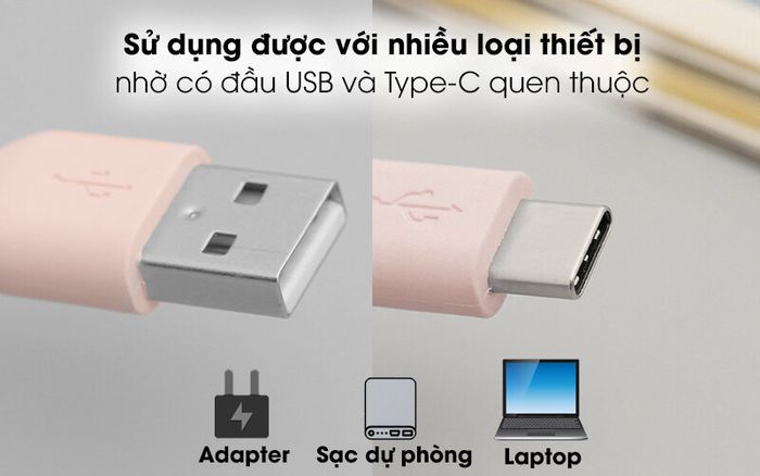 With the USB Type C connector, not only does it provide power to smartphones, but users can also charge larger devices like tablets and laptops. This is possible because this USB port supports power up to 100W. Therefore, when connecting through the USB Type C port, devices are always charged more rapidly.