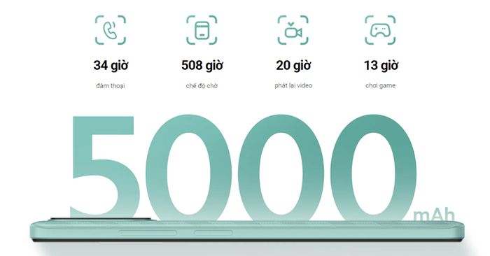 According to statistics, the battery life of Redmi 12C reaches 34 hours of talk time, 508 hours of standby mode, 20 hours of video playback, and 13 hours of gaming. These numbers highlight the impressive utilization that the 5000mAh battery brings.