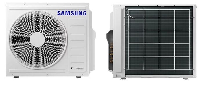 The Samsung AJ068TXJ3KH/EA outdoor unit can connect with up to 3 indoor units simultaneously, with a total cooling/heating capacity of up to 24,000 BTU. This makes this 1 hot 3 cold multi air conditioner particularly suitable for households with 3 bedrooms, or 2 bedrooms + 1 living room.