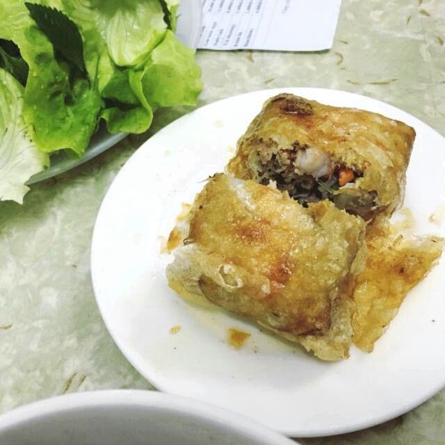 When grilling the fatty meat, the crispy charred edges receive high praise, wafting with the scent of lemongrass, marinated meat enticing passersby. Hương Liên's grilled meat is rich, with the aroma of charcoal grilling, not overly dry, making it perfect with noodles. In addition to the mixed spring rolls served as a side, the restaurant is also famous for its seafood spring rolls. The seafood spring rolls are rolled into large pieces, with a crispy shell that crumbles in the mouth, filled with a rich mix of shrimp, crab, meat, spicy black pepper flavor, fragrant with a hint of onions and the savory taste of seafood.