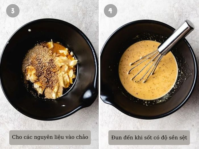Step 4: To make the sesame sauce less thick, you can add 1/2 tablespoon of water to the sauce mixture. Simmer over low heat for a few more minutes until the sauce mixture boils, then turn off the heat.