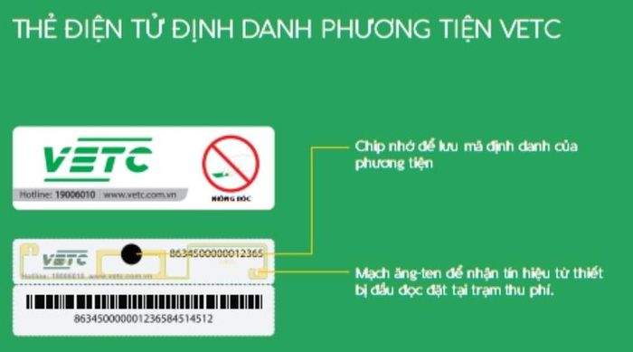 VETC is the non-stop toll brand of VETC Automatic Toll Collection Co., Ltd. The E-tag card is an identification card affixed to the windshield or light of the vehicle, facilitating passage through non-stop toll booths.