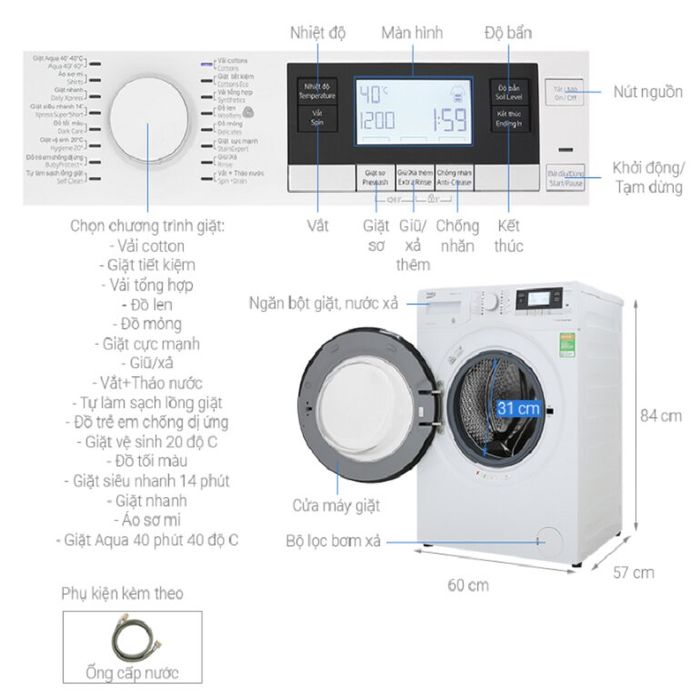 This is also a product chosen by many for its ability to integrate 2-in-1 washing and drying technology. An ideal choice for families with limited space for drying clothes. Additionally, the washing machine is equipped with 15 washing programs, so you don't have to worry about finding the right wash mode for the type of fabric you desire.