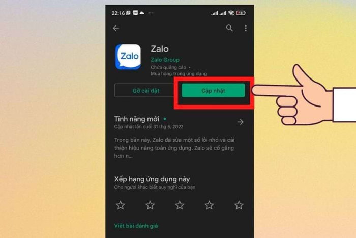 - Step 5: If the Zalo app displays the message 'Update', simply tap on it to update to the latest version.