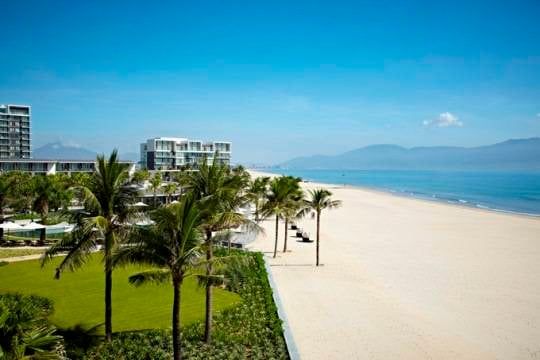 Hyatt Regency Danang Resort and Spa is a high-end resort in Da Nang, located right on the beach at the foot of the Marble Mountains. Its convenient location is one of its ideal features. From the position of Hyatt Regency Danang Resort and Spa, it only takes about 15 minutes by car to reach Da Nang International Airport. Landmarks such as Hoi An, My Son, and Hue are also not far away.