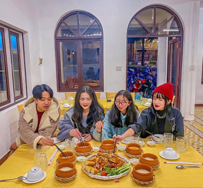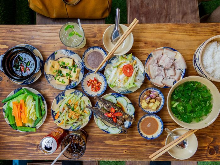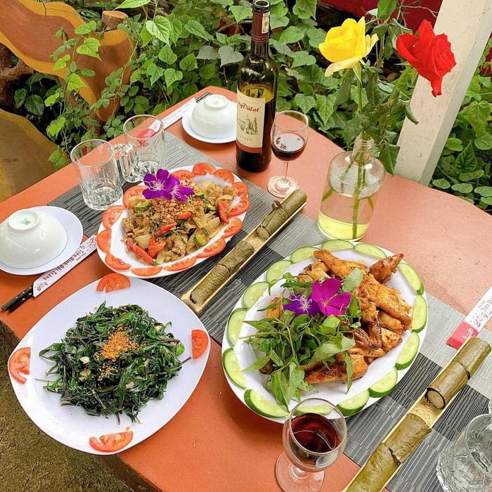 Not only does this lunch spot in Da Lat impress with its remarkable ambiance, but it also tantalizes diners with irresistible dishes. Rice cooked in a hot pot is served piping hot, with a crispy outer layer perfectly complementing the delicious braised fish. Additionally, you can indulge in unique and tantalizing dishes such as smoked oyster salad, warm seaweed soup, and more.