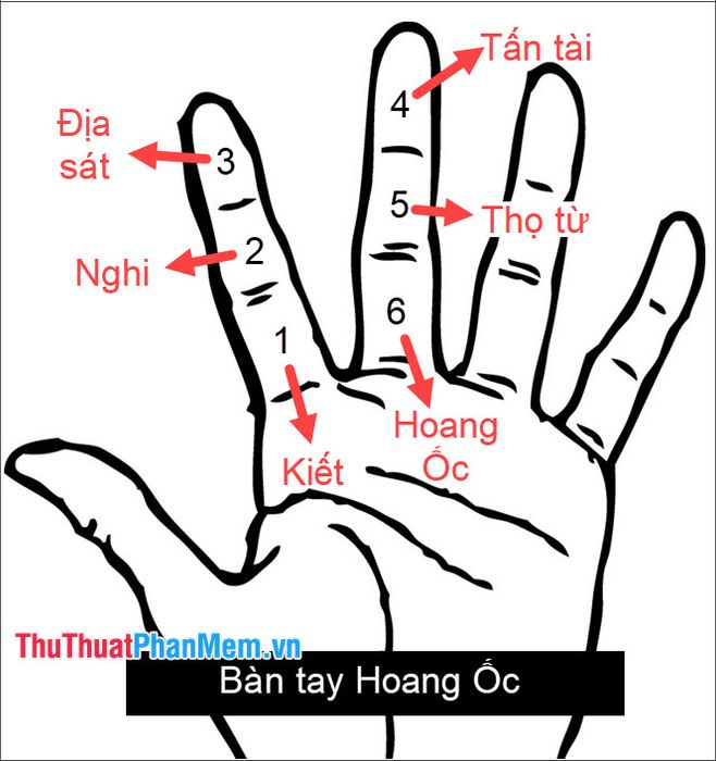 Calculating the Deserted Snail Limit is based on the 6 segments of the fingers, you can calculate as follows: the first finger segment starts from Kiết (good), the second finger segment is Nghi (good), the third finger segment is Địa sát (bad), the fourth finger segment is Tấn tài (good), the fifth finger segment is Thọ tử (bad), the sixth finger segment is the Deserted Snail (bad).