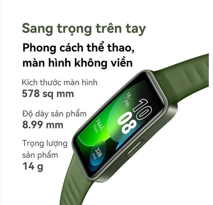 Next up is another excellent product from Huawei, the Huawei Band 7, which has made a significant impact in the Vietnamese tech market in recent years. It features a slim, compact design with a flat screen that provides a lightweight and comfortable experience for users.