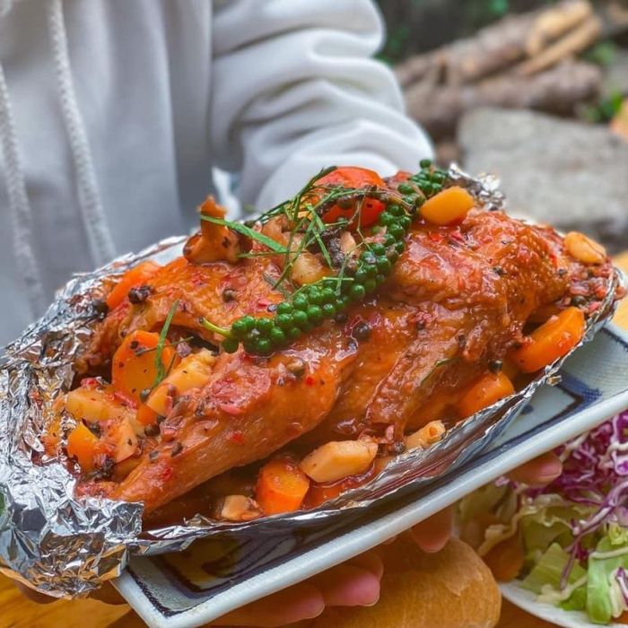 The restaurant stands out with its diverse cooking methods, including steaming, frying, grilling, braising, and hot pot dishes. This rich array of techniques infuses the menu with unique flavors, offering a delightful selection of country-style specialties that captivate the senses. The chicken served here is made with carefully selected ingredients, including the finest local poultry known for its firm, flavorful meat and green pepper sourced from the southern regions of Vietnam. The signature sauce, a closely guarded recipe crafted by the restaurant’s expert chef with over a decade of experience working in top restaurants nationwide, elevates the dish to an unforgettable level. As a result, Hải Lâm's green pepper grilled chicken has won the hearts of countless Sapa visitors.