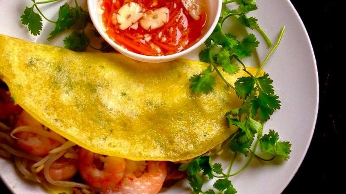 The filling can vary by region, sometimes including eggs, fresh herbs, or other ingredients. Unlike dishes like pho, bun, or bánh mì, which can serve as a main meal, bánh xèo is typically enjoyed as a snack or appetizer, served with a dipping sauce or soy sauce. Today, bánh xèo has become a common street food across Vietnam, loved for its delicious, crispy texture and savory taste.