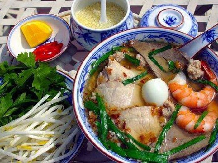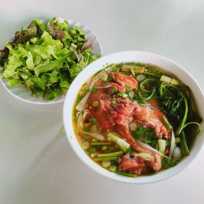 The broth for the noodles is made by simmering pork bones, preferably marrow bones, until clear and fragrant, with just the right amount of seasoning. This dish blends the savory sweetness of the meat and the aromatic noodles with the sour, salty, and spicy notes of fish sauce, making it a wonderfully balanced and flavorful meal.