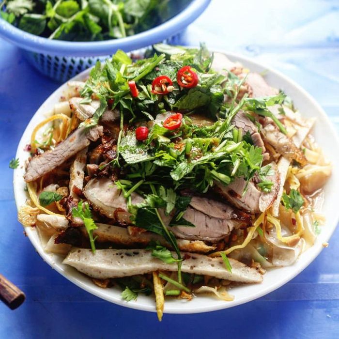 Cao Lầu is a signature dish of Hội An and Quảng Nam, ranked by CNN as the 4th most delicious food in Vietnamese cuisine. This dish consists of thick noodles, similar to udon, but served mixed, with toppings including fresh vegetables, grilled pork, and notably, crispy fried skin. The origins of Cao Lầu are shrouded in mystery, with some claiming it originated from the Chinese, though the Chinese do not claim it as their own.