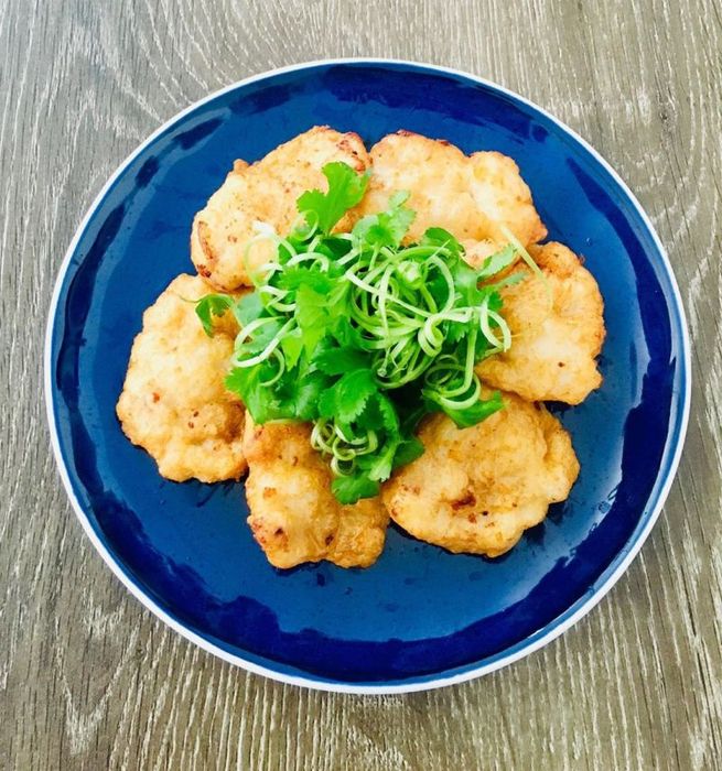 Squid Cake from the Quang Ninh region is made using fresh squid (specifically, cuttlefish). The unique texture of Ha Long Squid Cake (crispy and chewy) is a result of the special preparation technique by the local people of Ha Long City: the squid is finely pounded by hand, seasoned with cracked pepper and salt, then shaped into small, flat, round cakes and fried. When cooked, the cakes puff up like little fritters and have a golden color.