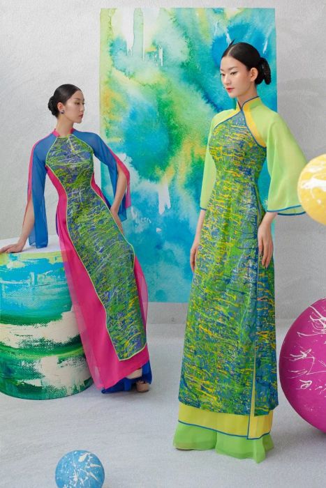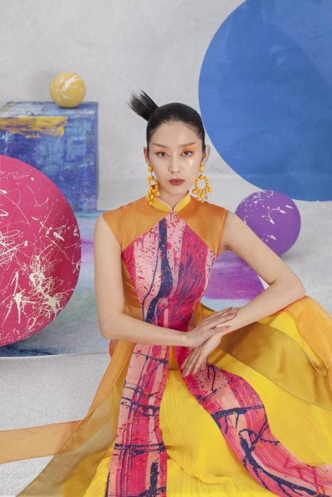 After the pandemic, designer Kenny Thai sought to bring new inspiration to the fashion world by collaborating with artist Thu Tran to introduce a collection of Ao Dai in vibrant colors inspired by unique visual art.