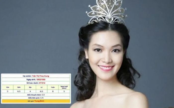 Following this, Thuỳ Dung returned to complete her education, though her grades remained average, with some even claiming she nearly failed to pass. During that time, many people questioned her deservingness of the crown she had received, citing her academic struggles as a point of concern.