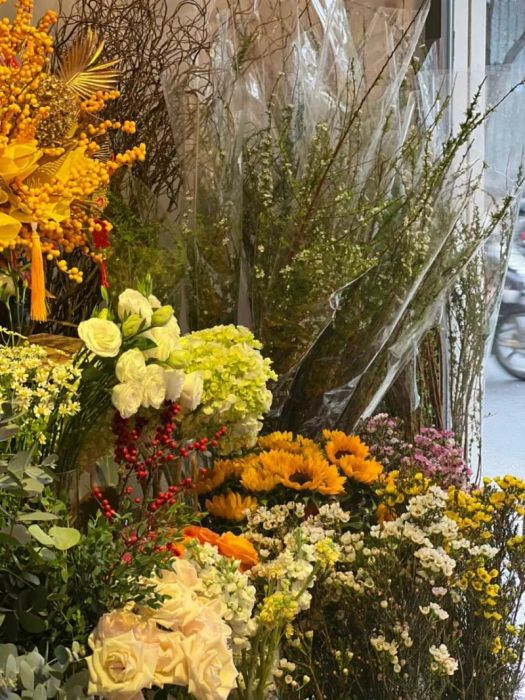 This shop offers a wide range of flower products, from cut flowers for vase decoration to custom floral designs for grand openings, birthdays, anniversaries, etc. For cut flowers alone, the shop has dozens of varieties that change daily. Among the most popular are premium roses, lilies, carnations, chrysanthemums, sunflowers, and more. Each flower type is categorized by color and characteristics to make it easy for customers to choose.