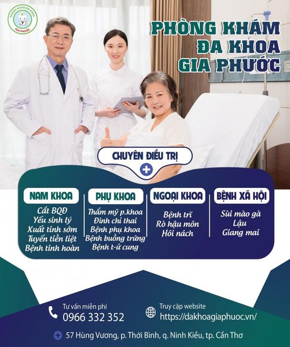 Gia Phuoc Private General Clinic is a fully licensed medical facility approved by the Ministry of Health. Located at 57 Hung Vuong Street, Thoi Binh Ward, Ninh Kieu District, Can Tho City, it is centrally located in the Mekong Delta region, making it very convenient for patients to access for treatment. This clinic is recognized as one of the most reliable healthcare centers in the Southwest region of Vietnam and is a trusted destination for patients seeking quality care.
