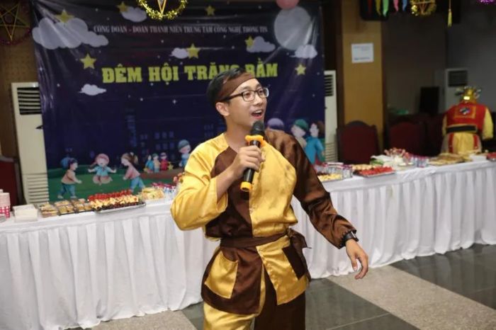 Dear guests, the Mid-Autumn Festival is a traditional celebration of the Vietnamese people, full of beautiful values. It is a special occasion for parents to show their love for their children, a time for children to play, carry lanterns under the bright moon, and enjoy activities with Cuoi and Hang Nga, including mooncake breaking... these moments are truly magical. The event organizers are honored to present tonight’s special performances, and we hope to receive your enthusiastic support with a big round of applause.