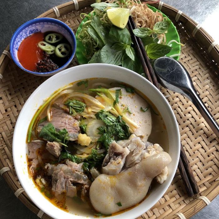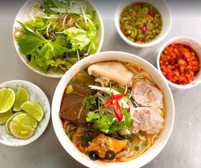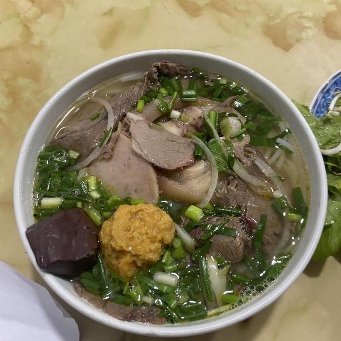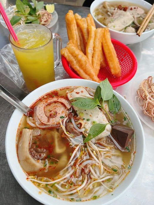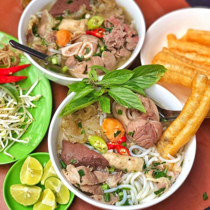 Starting at just 40,000 VND for a full bowl, you’ll get tender noodles, a clear, flavorful broth, and authentic Huế flavors. The crab cakes and beef meatballs are also highly praised here. The crab cakes are fragrant and tasty without any fishiness, while the beef meatballs are firm and flavorful. The beef itself is tender and fresh, adding to the appeal of Bún Bò Huế O Huyền. Aside from the Bún Bò Huế, O Huyền also offers other Huế specialties like Huế-style shrimp paste, fermented shrimp, sesame cakes, and royal teas, making it a great place to pick up souvenirs or enjoy a full Huế culinary experience.
