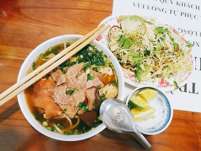 Have you ever tried a bowl of Bún Bò Huế with a light and sweet broth, not overpowered by fish sauce, all at an affordable price of just 35,000 VND? If not, head over to Bún Bò Huế Sông Hương. Known for its humble setting at 235 Âu Cơ, this restaurant offers a simple yet spacious atmosphere, perfect for both small and large groups.