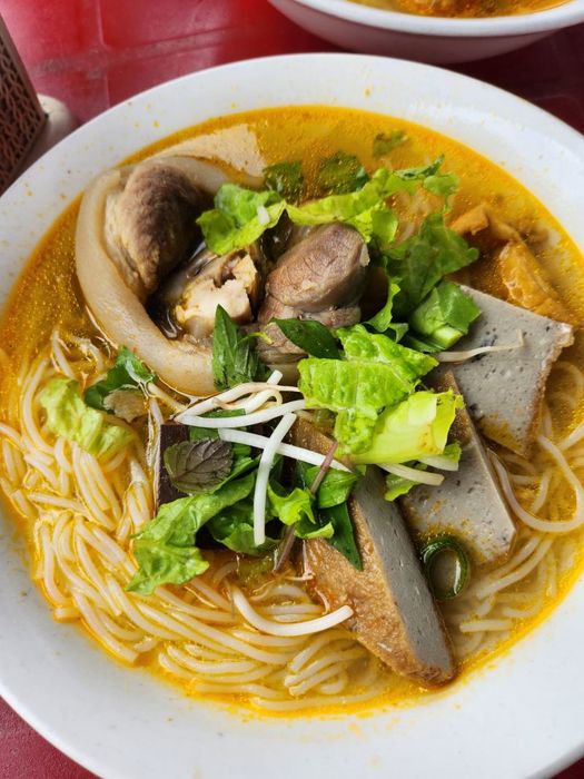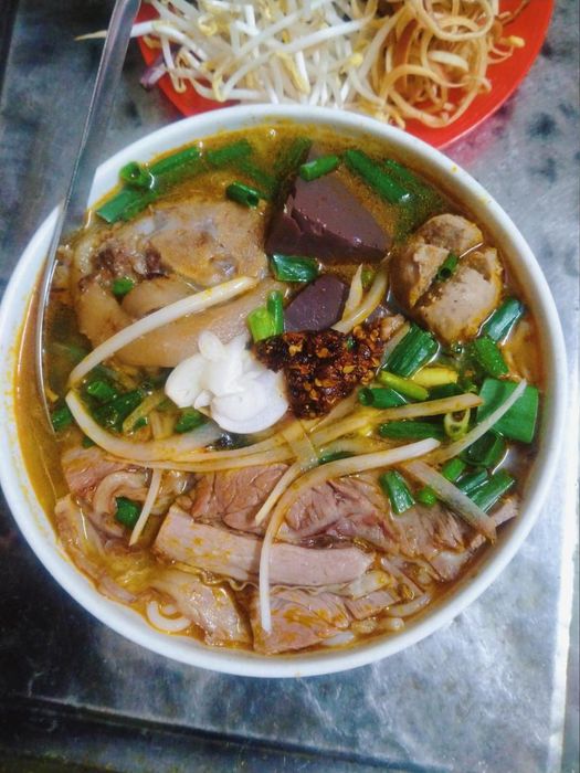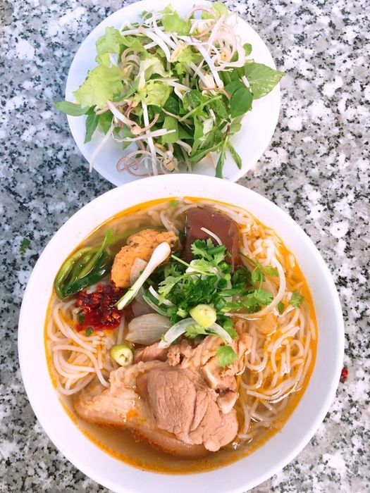 Bún Bò Huế Nhật Hồng is well-known not just for its delicious Bún Bò Huế, but for the incredibly friendly and welcoming owner. Sometimes, the warmth and smile of the owner are what make the food even more enjoyable. The bowls here are packed with tender pig's trotter, beef tendon, homemade crab cakes, soft blood pudding, and enticingly juicy pork belly. The mix of thinly sliced beef and pork pairs perfectly with the rich, sweet broth. You can choose from beef tendon, beef shank, or a mix of both—each one is delightful.