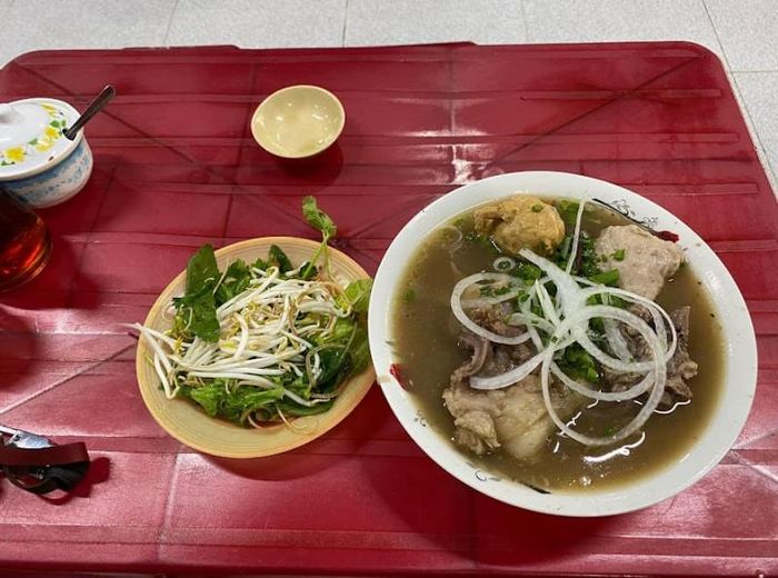 The broth here is rich and aromatic, infused with the unmistakable scent of shrimp paste. It may not be completely clear, but it captures the true essence of Huế-style Bún bò. For just 45,000 VND, you get a generous bowl filled with various ingredients: two pieces of boiled blood pudding, thinly sliced beef, crab cakes, beef meatballs, pig’s trotter, and pork leg, along with a side of fresh herbs. Although there are only two pieces of beef, they are cut in large slices, making each bite satisfying. A standout feature is the tender pork leg, which has a slight pinkish hue instead of being pale, allowing you to savor the sweetness of the meat with a subtle peppery aroma. In addition to Bún bò Huế, you can also try other dishes like Bánh bột lọc and Bún bắp bò, which are equally delicious.