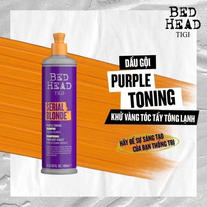 - TIGI Bed Head Serial Blonde™ Purple Toning is a specially formulated product used by professional hair stylists, designed to provide salon-quality results at home. If you loved Bed Head Dumb Blonde™ Purple Shampoo, you'll love Bed Head Serial Blonde™ Purple Toning!