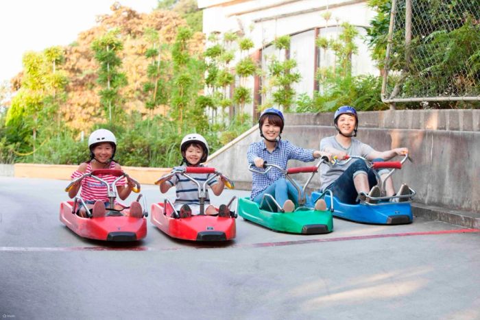 The highlight is the Cycle Luge area, a bike roller coaster where you can experience thrilling adventures as you glide down steep slopes. After enjoying the rides, you can relax at the fully-equipped camping site, perfect for barbecues and unwinding in the cool forest.