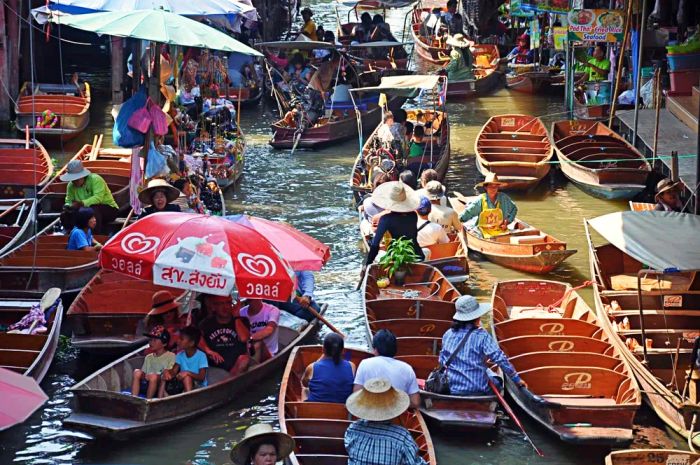 The floating markets in Bangkok are an ideal family weekend getaway. Here, you can experience the lively atmosphere of a riverside market where you can shop for a wide range of products, from clothes to souvenirs.